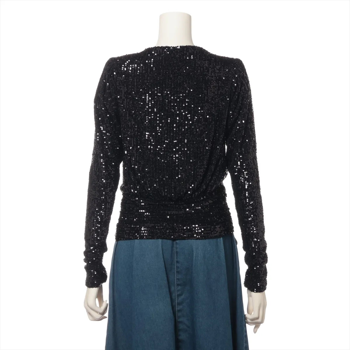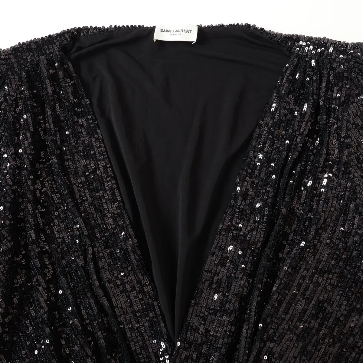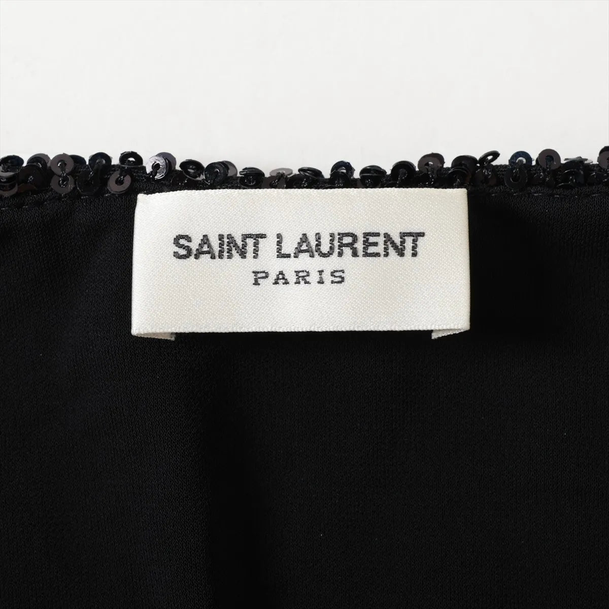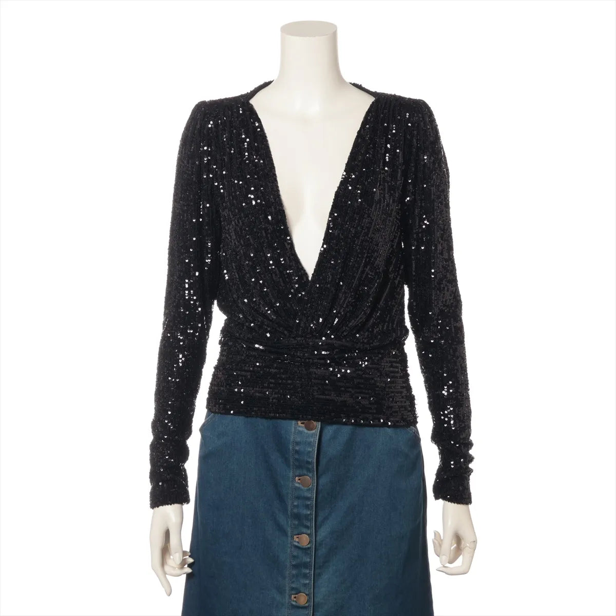 Saint Laurent Paris Deep V-Neck Sequins Top Black