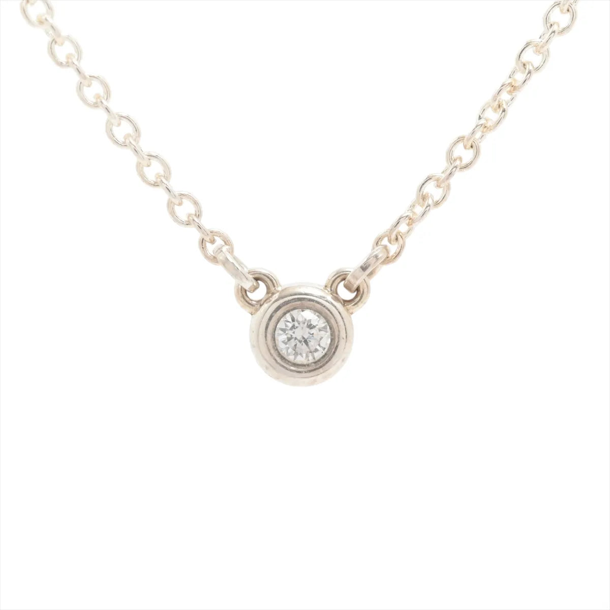 The Tiffany & Co. By the Yard Diamond Necklace in Silver is a timeless expression of understated elegance. Crafted from polished sterling silver, the delicate necklace features a bezel-set diamond that adds a subtle yet radiant sparkle.