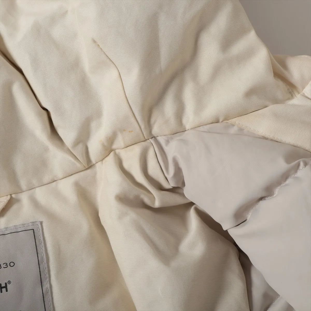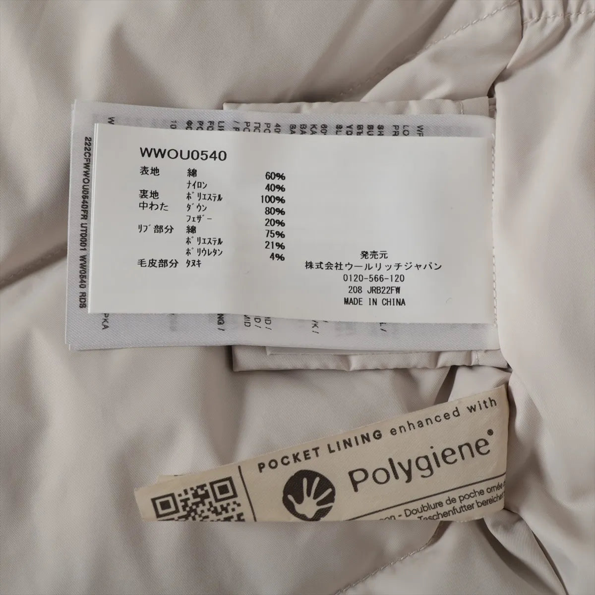 The Woolrich Cotton Down Jacket in Ivory is a cozy and stylish outerwear piece designed for cold-weather comfort. Crafted from soft, durable cotton and insulated with premium down, it provides exceptional warmth without sacrificing style. The jacket features a fur-trimmed hood for added protection and a touch of luxury, a classic button-down closure for a timeless look, and two front pockets for practicality and convenience.