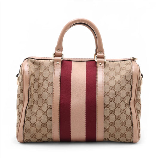 Gucci GG Logo Canvas Leather Two-Way Shoulder Bag Beige x Pink